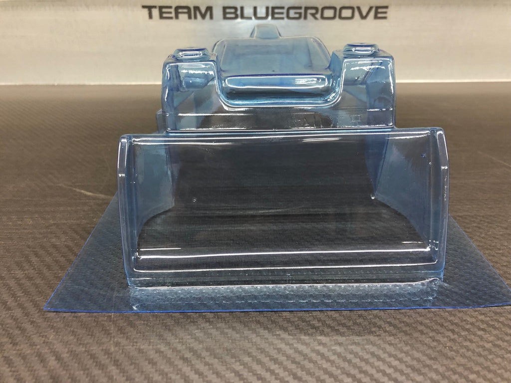 One new .030 Lexan body for the Kyosho Raider chassis. Comes with body pictured. Product is clear with overspray and is not painted or trimmed. Decals and window masks are not included. Please check mciracing.ca for availability and custom options. Painting is not available. Painted body and chassis is not for sale. Please note that the rear wing is molded in the rear section of the body and must be trimmed off and mounted on top.