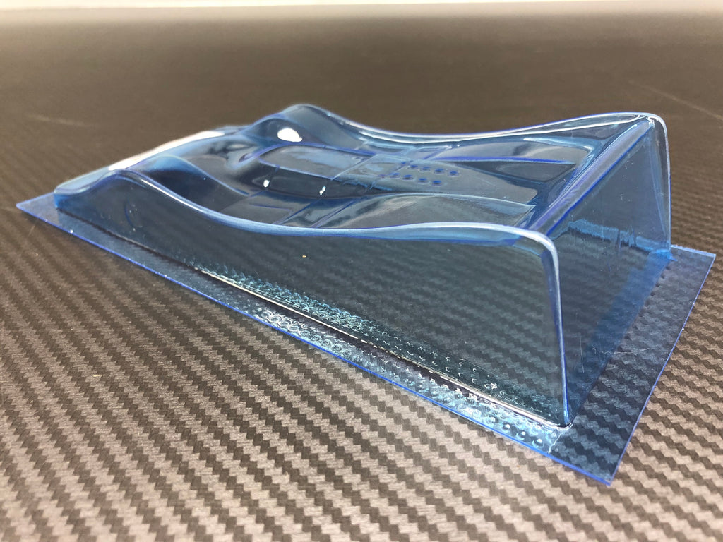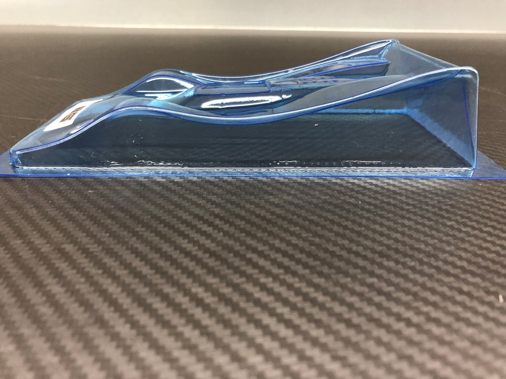 Body is crystal clear with blue hued over spray film. Decals and window masks are not included. Please check mciracing.ca for availability and custom options. Painting is not available.