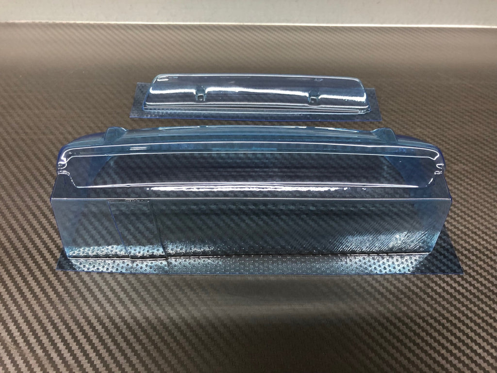 One new .030 Lexan rear bumper and wing with overspray film. Fits the Plymout Cuda AAR Body for HPI Racing Trans AM series. Comes with what is pictured. Product is clear and is not painted or trimmed.